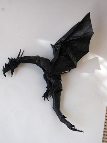 El primer dragón que apruebo sistemáticamente es un dragón de cuatro extremidades. Para esto, habría de tomar la base y reducir su complejidad. Ahora, como pueden ver, el proceso para adaptar el modelo requirió cierta perdida de detalles en el cuello. Sin embargo, la longitud que este alcanza logra recuperarlos de nuevo. Trueque de detalles en la estructura por detalles en el plegado.
