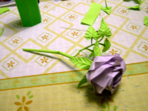 3.Dobla una rosa de Kawasaki (recomiendo papel Enhance, en húmedo)