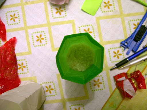25. Cierra la figura por debajo y coloca un heptágono de cartón grueso en el fondo